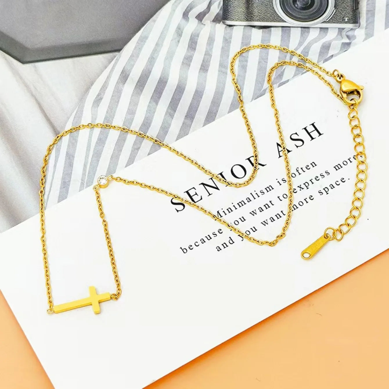 316L Stainless Steel Cross Charm Necklace & Bracelet Set - Vintage Women's Jewelry Gift